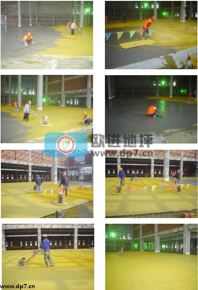耐磨地坪是一種新型的地坪施工方式,與以往的水泥地坪和水磨石地坪相比,耐磨地坪選用硬質石英砂或者金剛砂為骨料、特種凝膠材料,加入適量的改性助劑、色料等原料,通過合理級配、研磨混合制作而成。其施工方式在于與現(xiàn)澆混凝土拌合后,敷設與混凝土結構的表層,從而提高混凝土的耐磨、抗沖擊、耐油污等性能。在經過磨光機對表面進行加工后,可以形成一層相對致密且強度較高的耐磨損面層,是當前理想的混凝土表面硬化材料。