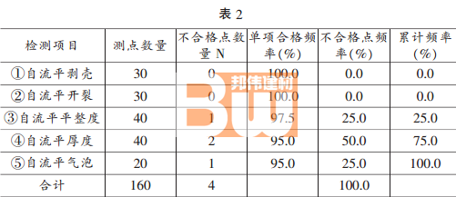 實施結(jié)果:臨修庫彩砂自流平施工后無剝殼、起皮現(xiàn)象,合格率達(dá) 100%。
