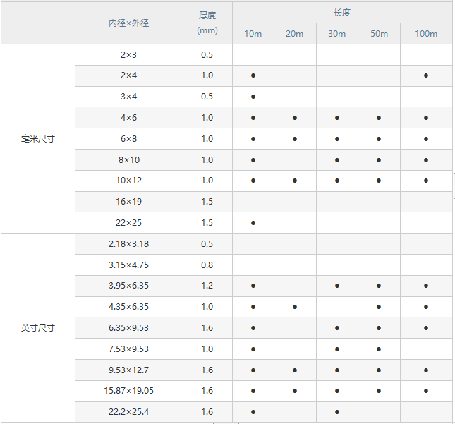 ※● 印為有庫存。關(guān)于其他尺寸請另外商談。