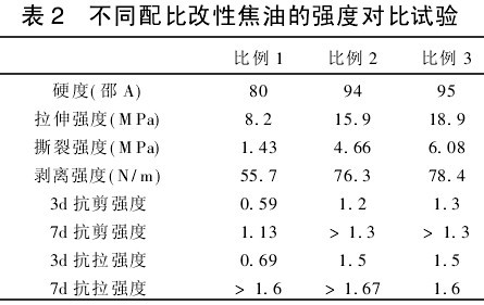 (3)不同配比改性焦油的強(qiáng)度對(duì)比試驗(yàn),結(jié)果見表2。