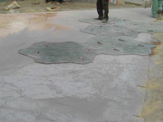 | | 藝術(shù)地坪施工6. 待歐進(jìn)硬化劑蔭濕后用手工鐵板或大抹刀進(jìn)行第一次找平收光,不要過分鏟抹混凝土表層,這樣會導(dǎo)致表面出水并減弱色彩; |