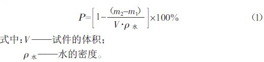 將試件在水中浸泡24 h 后,在水中測試試件的質(zhì)量m1,然后將試件風(fēng)干24 h,測其質(zhì)量m2,根據(jù)式(1)計算混凝土的孔隙率Ρ。