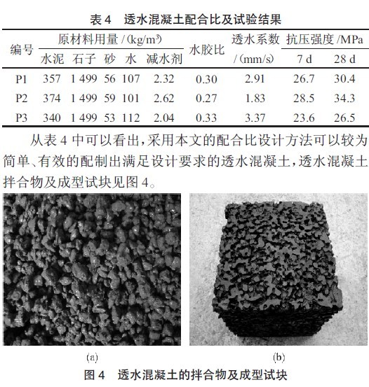 設(shè)計強(qiáng)度等級為C30,透水系數(shù)≥3 mm/s 的透水混凝土,配合比設(shè)計步驟為: