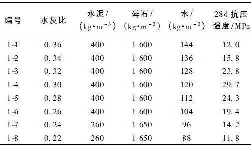 表1 水灰比與抗壓強度關(guān)系