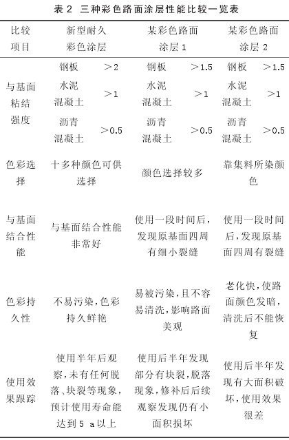 彩色路面涂層性能比較見表2所列。